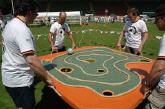 At 10 coached game stations max. with nicely decorated games the teams will be engaged with balls in some varieties, for example to screws studs into XXXXL football shoes, to shoot with a ball cannon, to change shirts or to transport 'hurt' players... In the end there will be a penalty shootout and of course a winner ceremony.